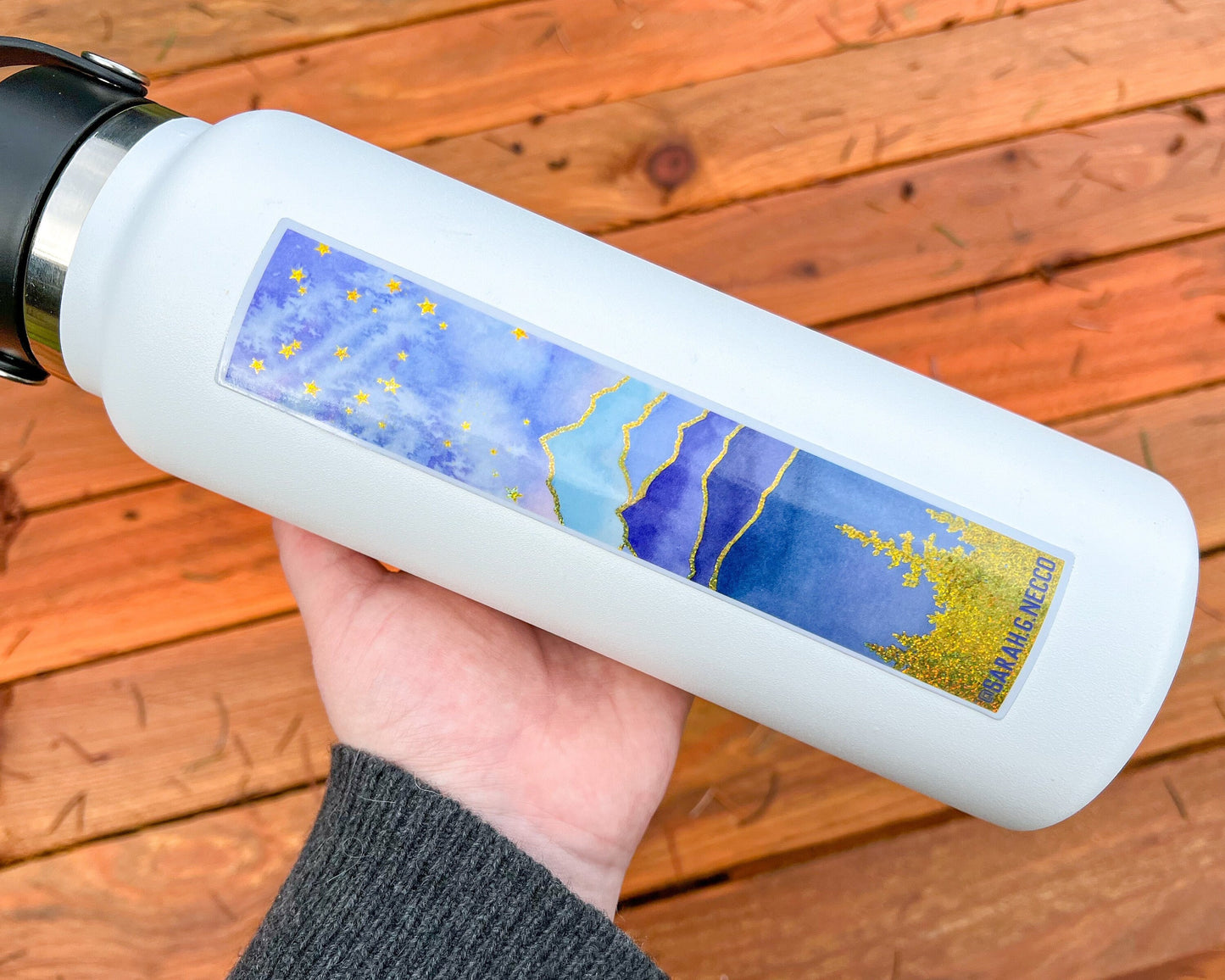 These stickers are waterproof, weatherproof, dishwasher safe, and very durable. Put them on a notebook, your favorite water bottle, or even your car!
