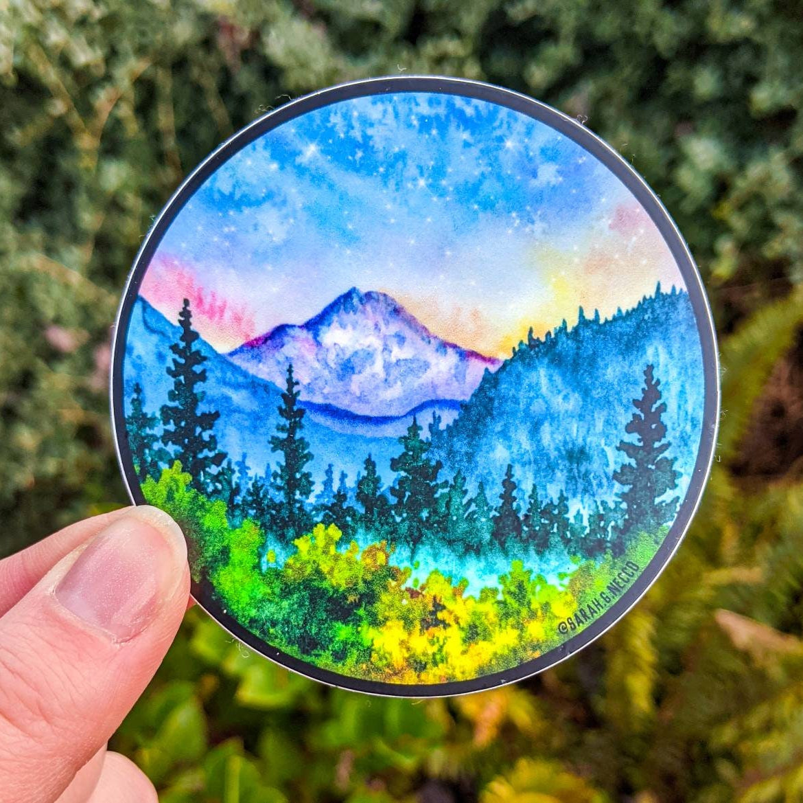 This sticker was created from one of my original watercolor paintings of Mt. Rainier National Park in WA State.
