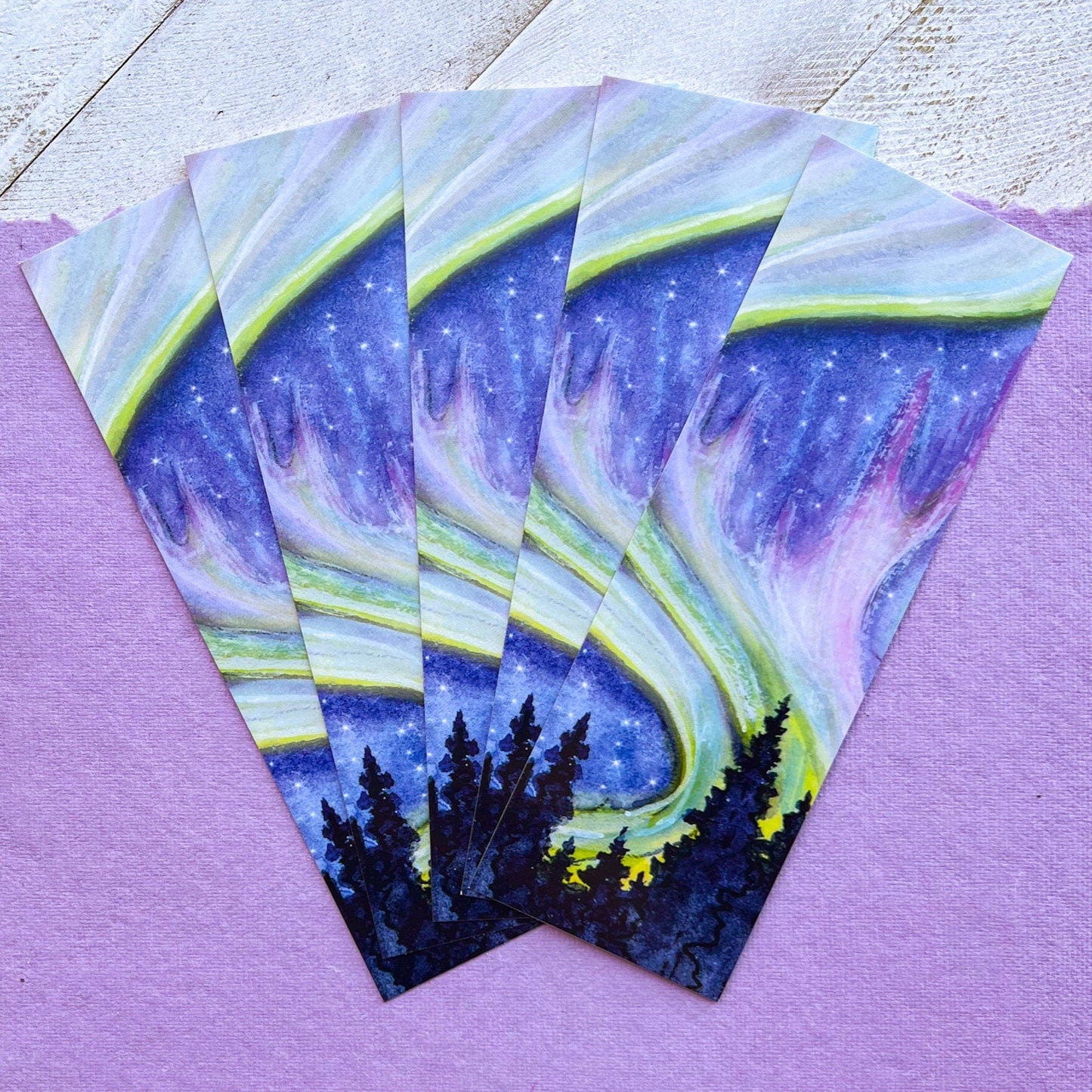 Watercolor Art Print Bookmark, 2”x6” Glossy Card Stock, Northern Lights